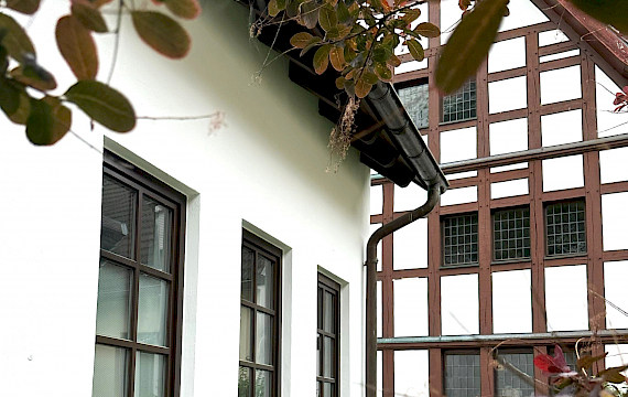Im Vorderhaus ist es ein charmantes Fachwerkhaus aus der Renaissance, ein selten erhaltenes Herrschafts- und Gesindehaus an der historischen Stadtmauer.
