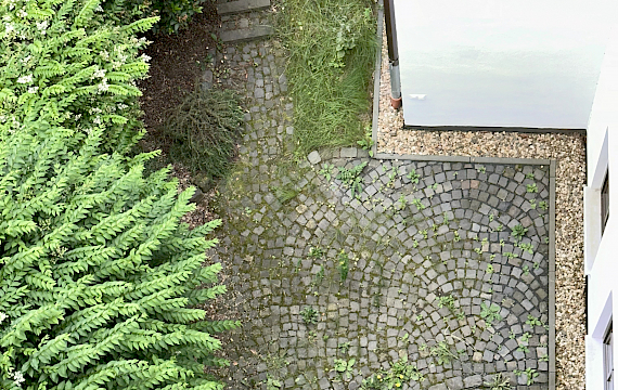 Angeschlossen daran befindet sich im hinteren Bereich ein moderner, separater Neubau in Form eines Einfamilienhauses.